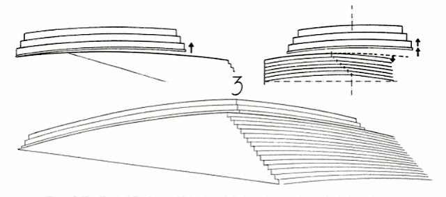 The foundation is curved in both directions, so as to produce a building floor which is convex. The first question that comes to mind, of course, is why? Vitruvius, whose work